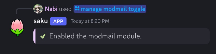 Use /manage modmail toggle to enable or disable modmail
